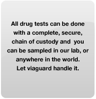 Court legal and informational drug tests are also done by viaguard on urine, blood, or saliva samples. Call for details.